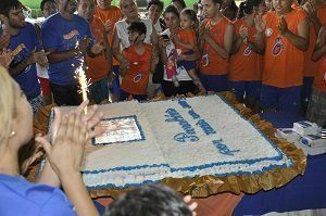 Já cansados, foi hora do lanche, regado a refrigerante, pipoca doce, cachorro quente e o bolo que servia mais de 500 fatias. Tudo, regado ao som da banda Marrakesh, com músicas sertanejas, pagode e discoteca.