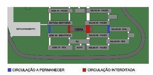 Haverá interdição em duas passarelas localizadas próximas a ele. A primeira fica entre o prédio da Biblioteca e o antigo prédio da Reitoria. A segunda, entre o prédio da Faculdade de Educação (FACED) e o prédio da Faculdade de Estudos Sociais (FES), situada próxima ao Restaurante Universitário (RU), também vai ser interditada (Ver mapa acima).
