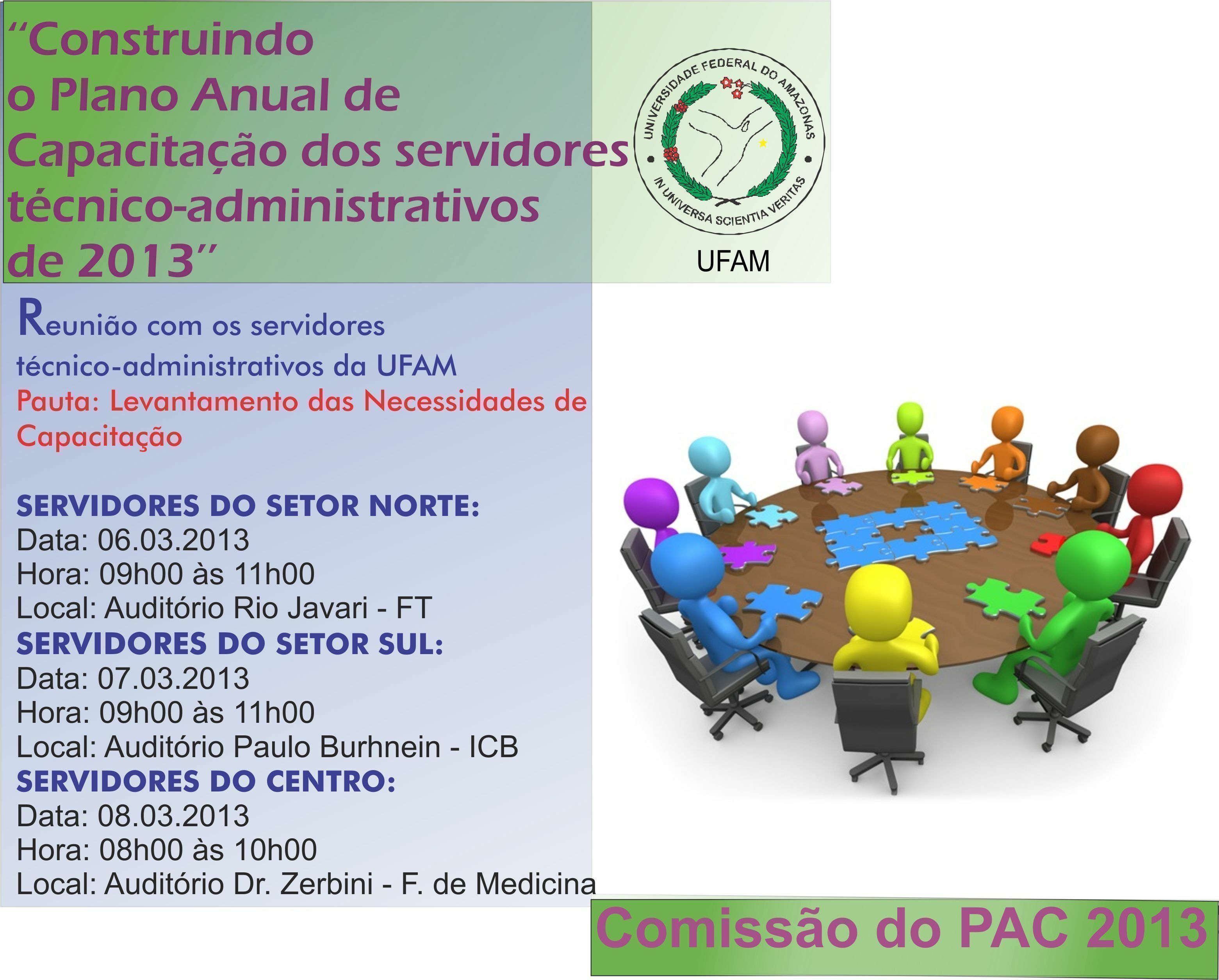 O Departamento de Recursos Humanos (DRH) realiza, com o objetivo de preparar o Plano Anual de Capacitação dos servidores Técnico-administrativos da Ufam, reuniões setoriais para expor a metodologia do levantamento da necessidade de capacitação.